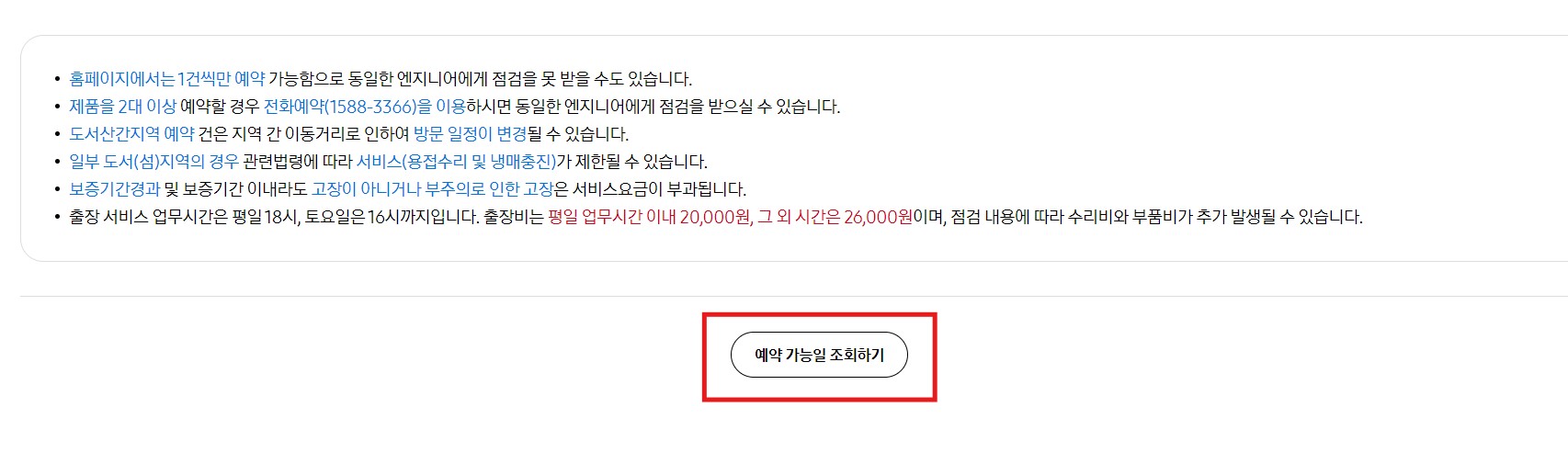 1. 위 '삼성에어컨 AS센터 바로가기'를 클릭 후 출장서비스 예약을 선택합니다.