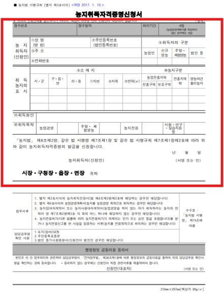 - 농지취득자격증명신청서