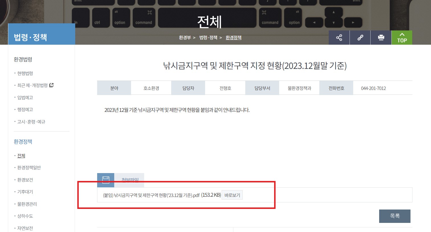 1. 전국 낚시 금지구역을 확인하는 방법 첫 번째는 아래에서 [환경부 홈페이지]에 접속합니다.
